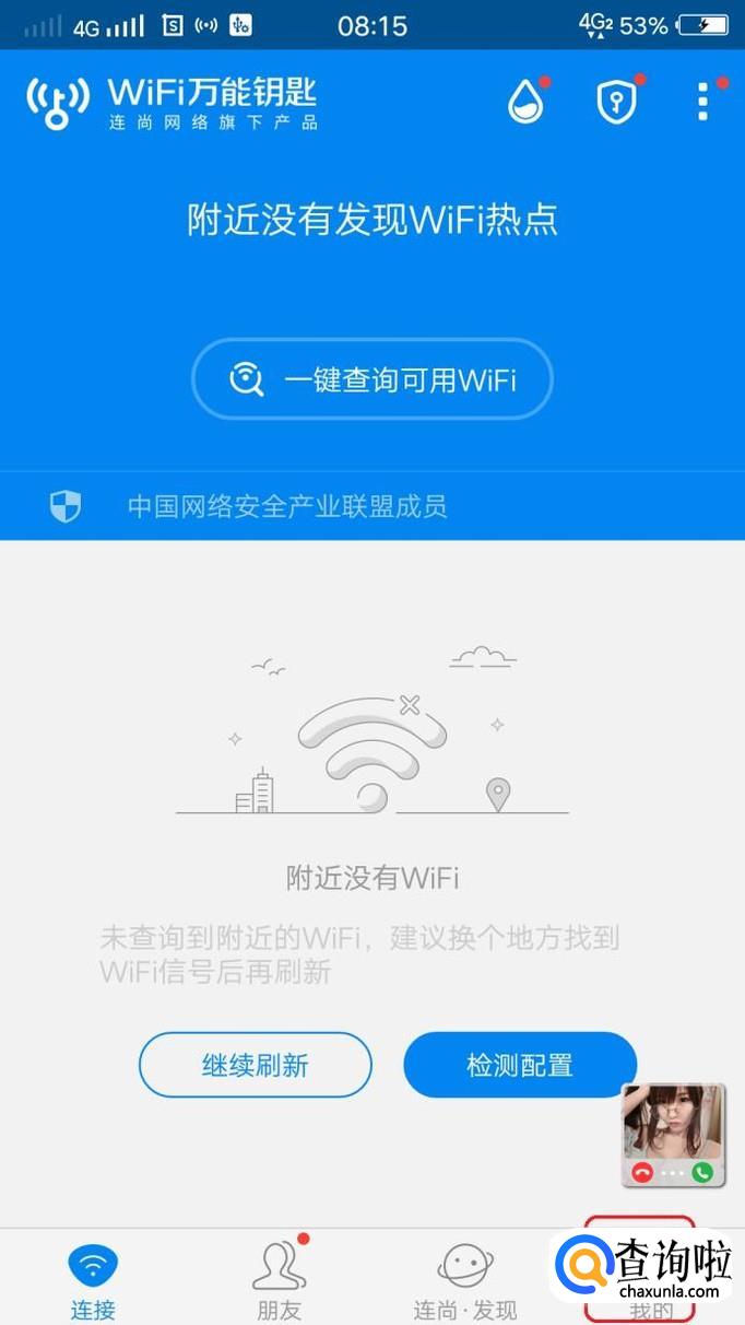 首先,我们打开WiFi万能钥匙主界面,如图所示,点击右下角“我的”。