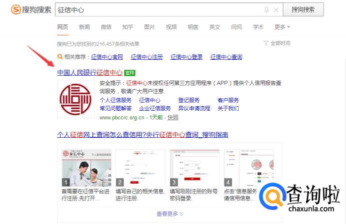在搜索框中搜索【征信中心】,然后我们打开这个官方网站。