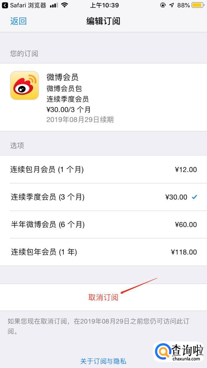 然后选择取消订阅。