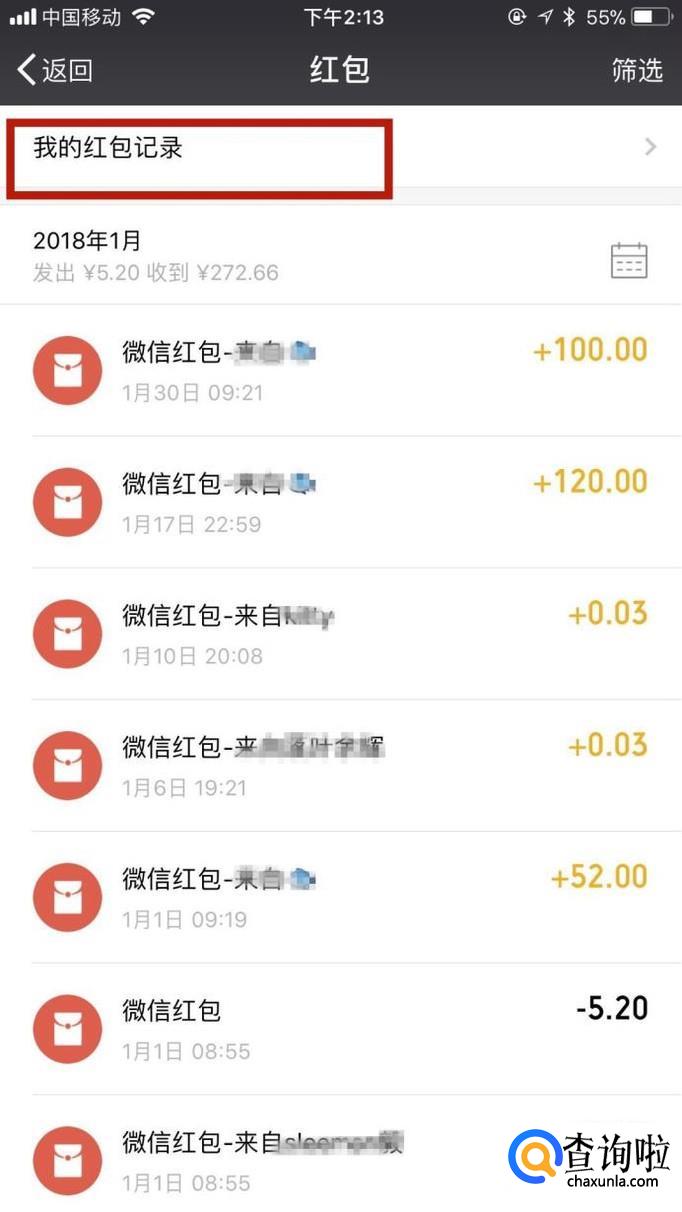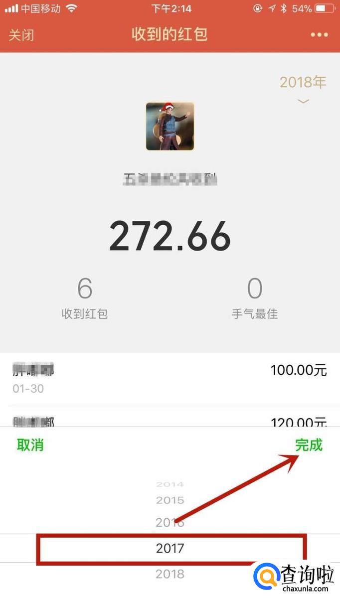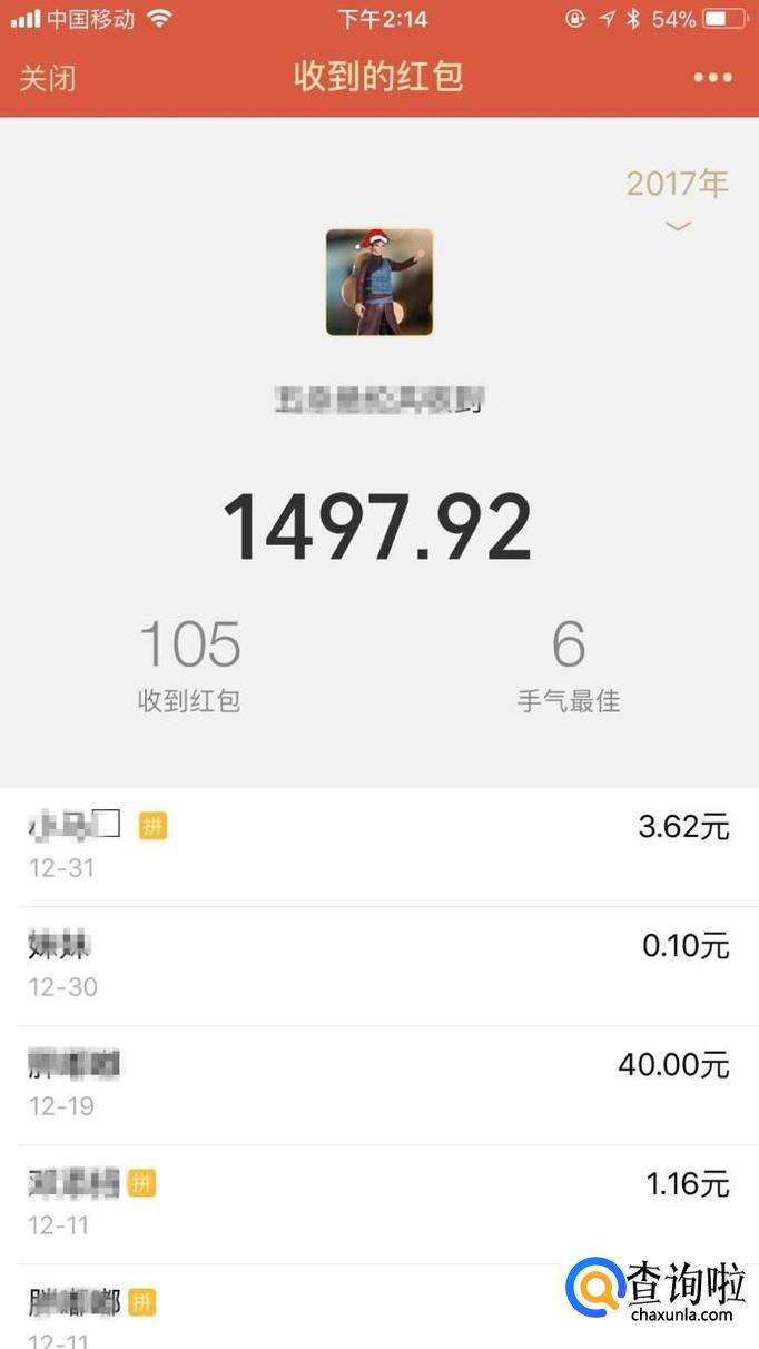 这样你就可以看到你自己的一年的收到红包的情况了。
