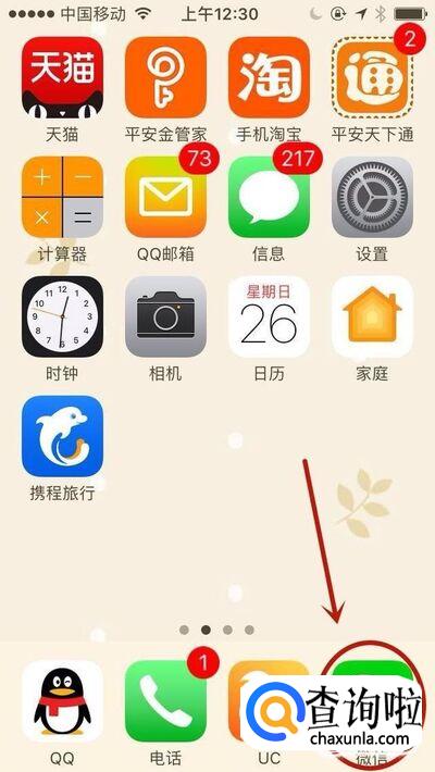 首先在我们的手机桌面上找到微信并点击它,如下图所示。
