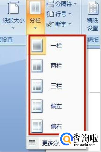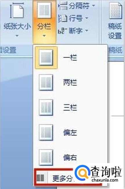 如果这里没有你想要的分栏类型可以点击“更多分栏”,如下图所示。
