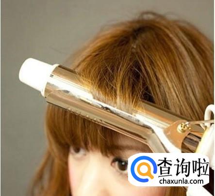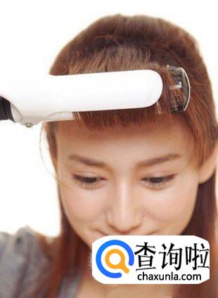 然后让卷发棒插上电,开始加热,注意不要太热了,刚开始烫的时候,要将刘海分为三批,一点一点的卷,不要心急。