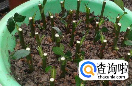 一般在早春或晚秋玫瑰休眠时,剪取成熟的带3至4个芽的枝条进行扦插。如果嫩枝扦插,要适当遮荫,并保持苗床湿润。扦插后一般30天即可生根,成活率70%至80%。