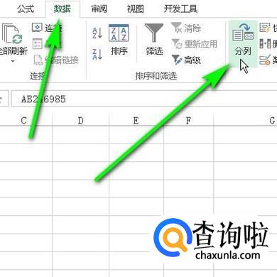 把表格全选中后,点击数据选项卡,再点:分列