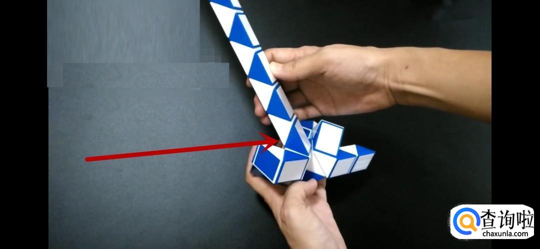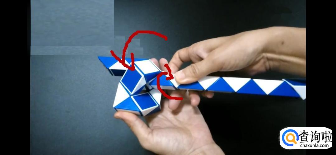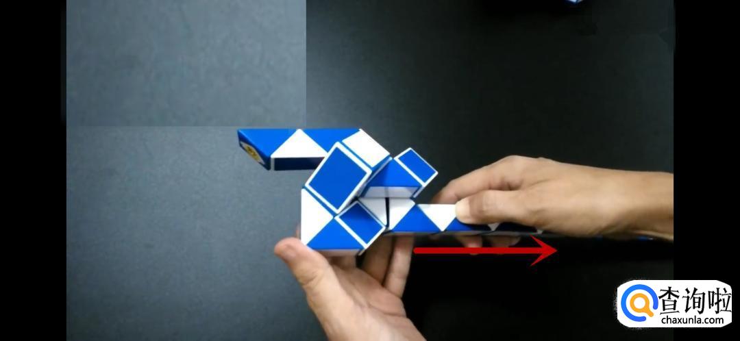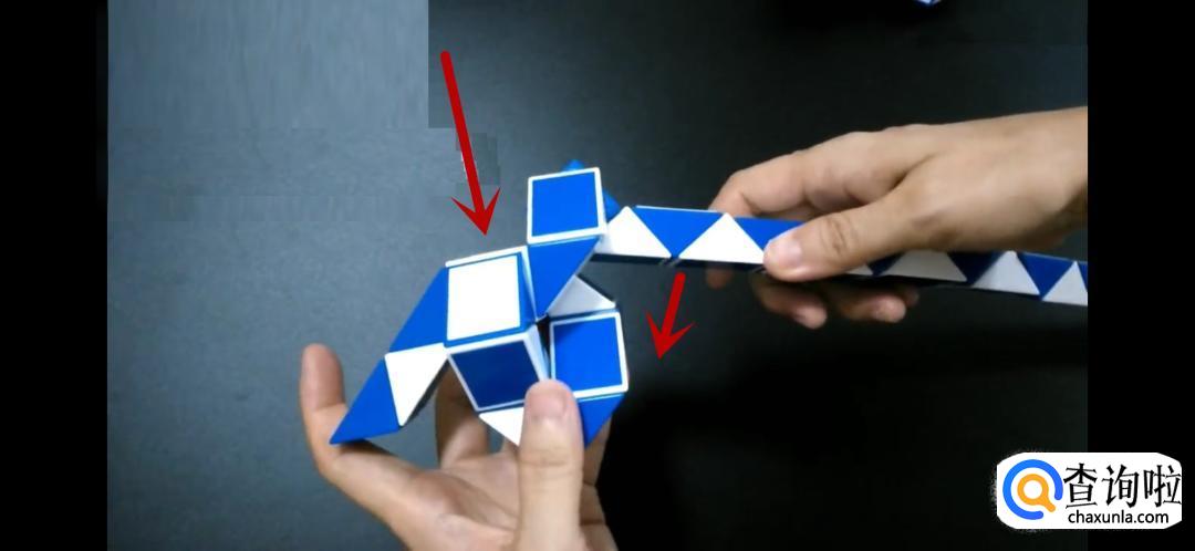 将魔尺紧挨着旁边的魔尺,是不是形状已经初现了呢,继续翻转箭头所指的方向。