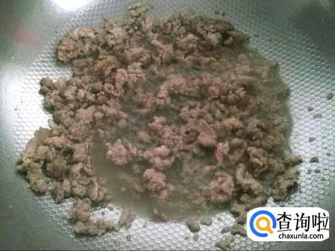 起锅烧热,下油,下肉末炒至变色。