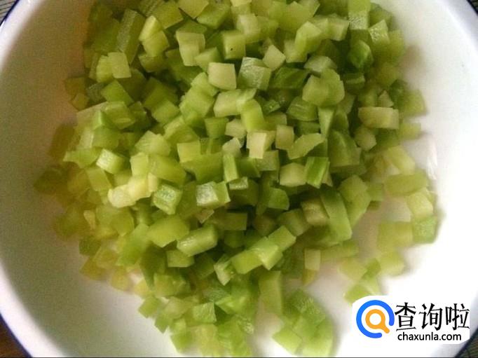 莴笋去皮,清水洗净后切成细丁。