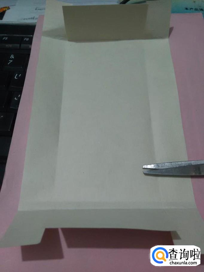 用剪刀把中间长方形的四个角上的竖线剪开。