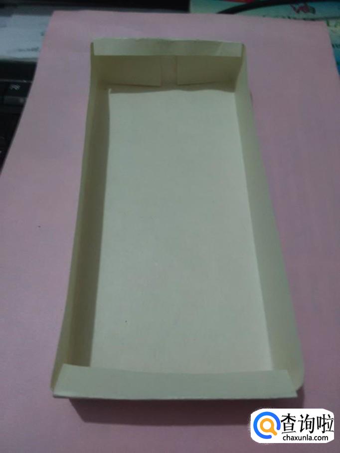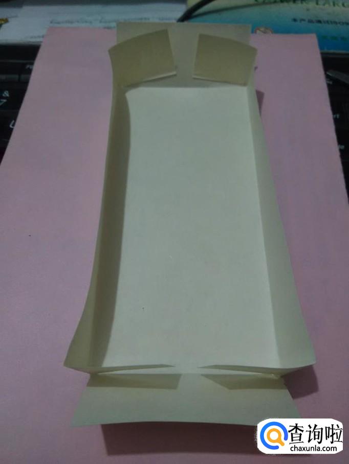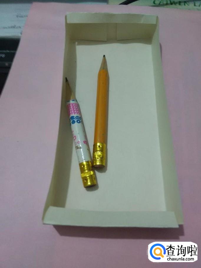 把上下两边往中间立起来,从上往下压住两侧的角,把多余的部分折进盒里,一个文具收纳盒就做好了。