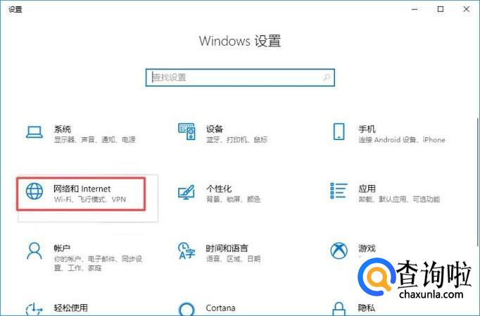 弹出的界面,我们点击网络和Internet;