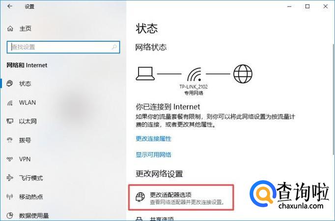 弹出的界面,我们点击更改适配器选项;