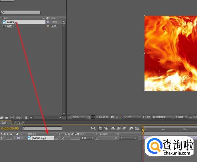将素材文件从项目面板,拖拽到时间线的图层面板上。
