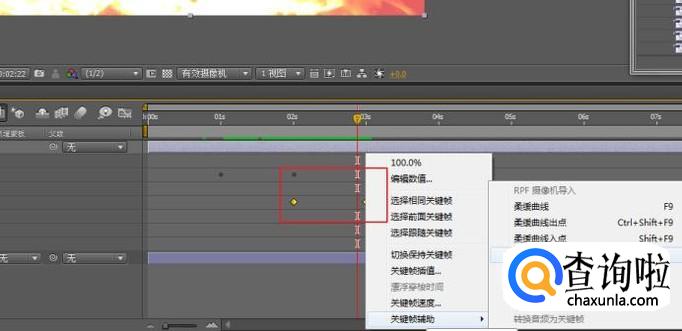 框选转场的动画关键帧,在结尾的关键帧上右击鼠标,选择“关键帧辅助>时间反向关键帧”,使动画产生相反效果。