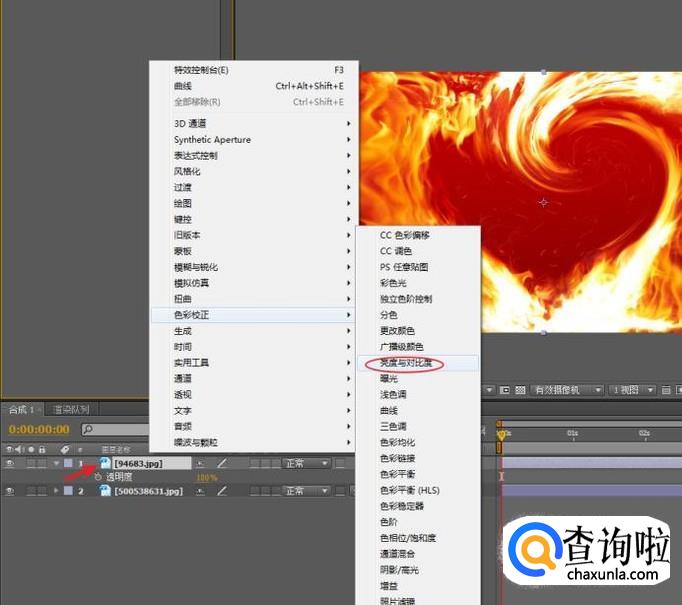 选择图层:“色彩校正>亮度与对比度”,为画面添加亮度效果。