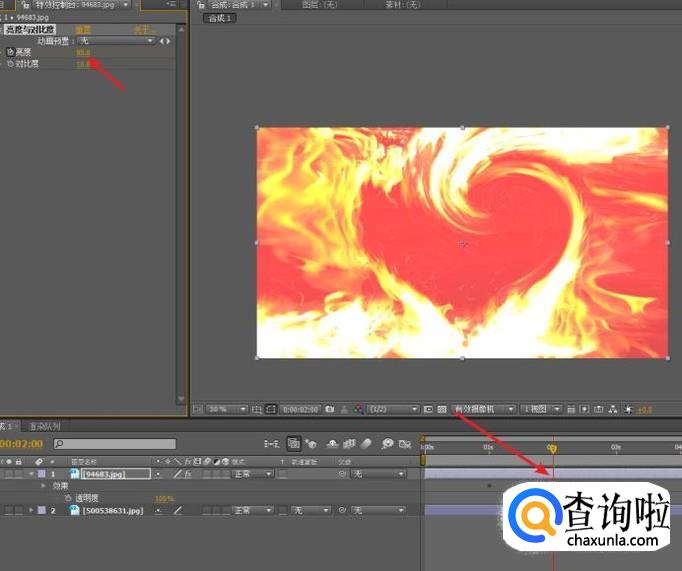再次拖拽时间线指针到第二秒,设定“亮度”属性为:85,增强画面亮度。