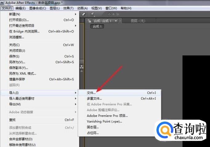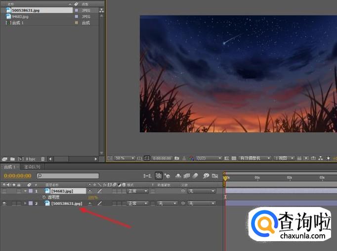 通过执行命令:“图像合成>新建合成组”,创建一个新的合成。