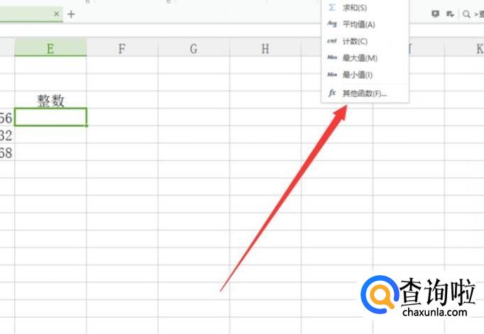 鼠标左键选择整数的单元格,并选择菜单下函数下的“其他函数”,如图所示。