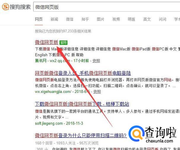 进入之后,搜索“微信网页版”,点击并进入,如图所示。