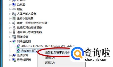 用鼠标右键点击网卡,选择“更新驱动程序”即可。