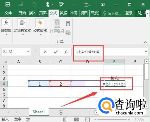 实际上有没有区别?区别肯定有的,我们尝试将三个单元格相加试试。在总和下面输入=b4+c4+D4,无法计算。如果b4是数字格式非文本格式计算结果应该是6.。