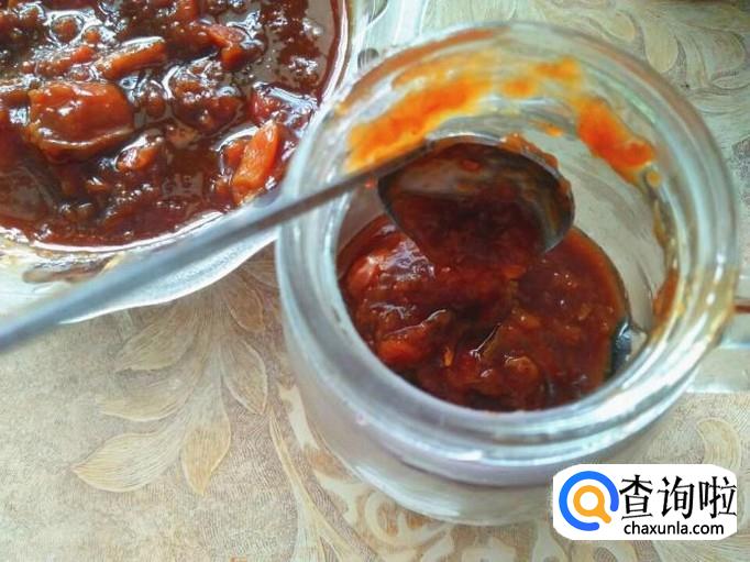 将放凉后的山楂红糖膏装进早就刷洗干净的玻璃罐子里面。