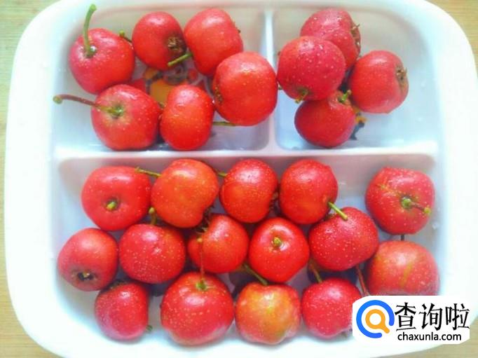 山楂清洗干净之后,取出来控控水分。