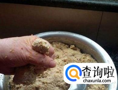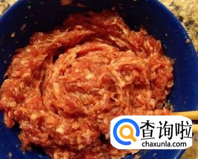 用手将和好的肉馅挤成乒乓球大小的丸子。