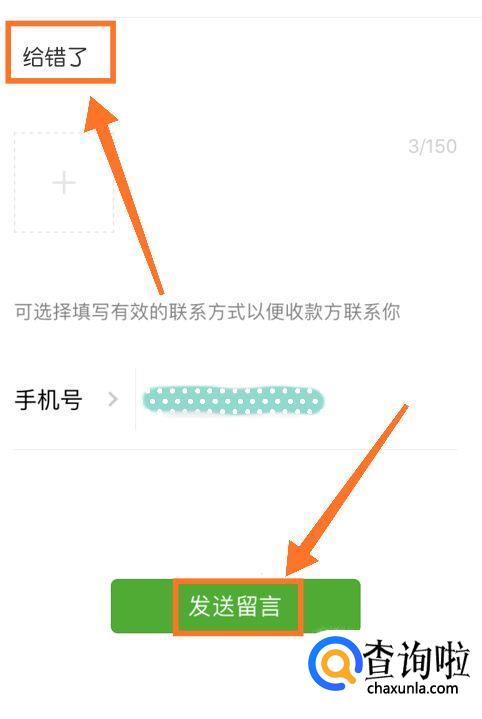 然后写出原因和我们的手机号,接着点击【发送留言】。
