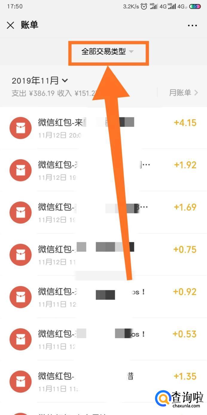 然后我们点击正上方的【全部交易类型】。