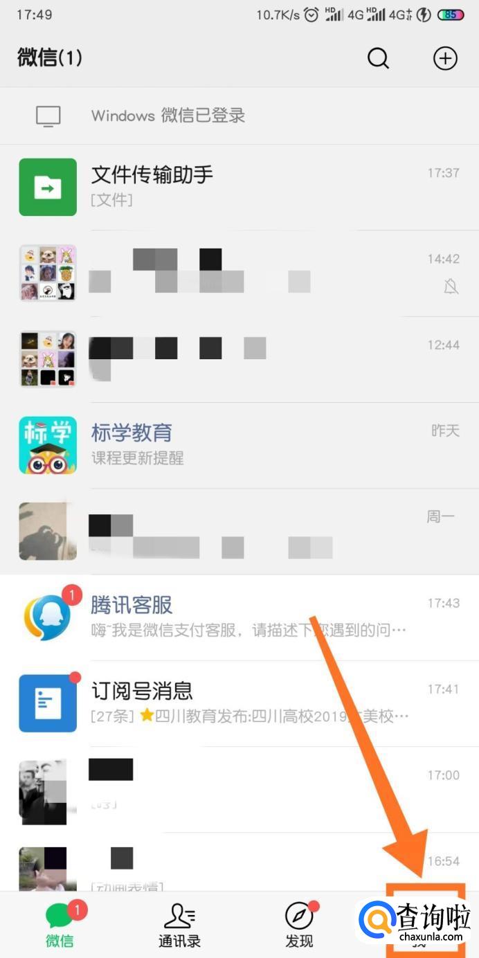 打开微信以后我们点击右下角的【我】,如图二所示。