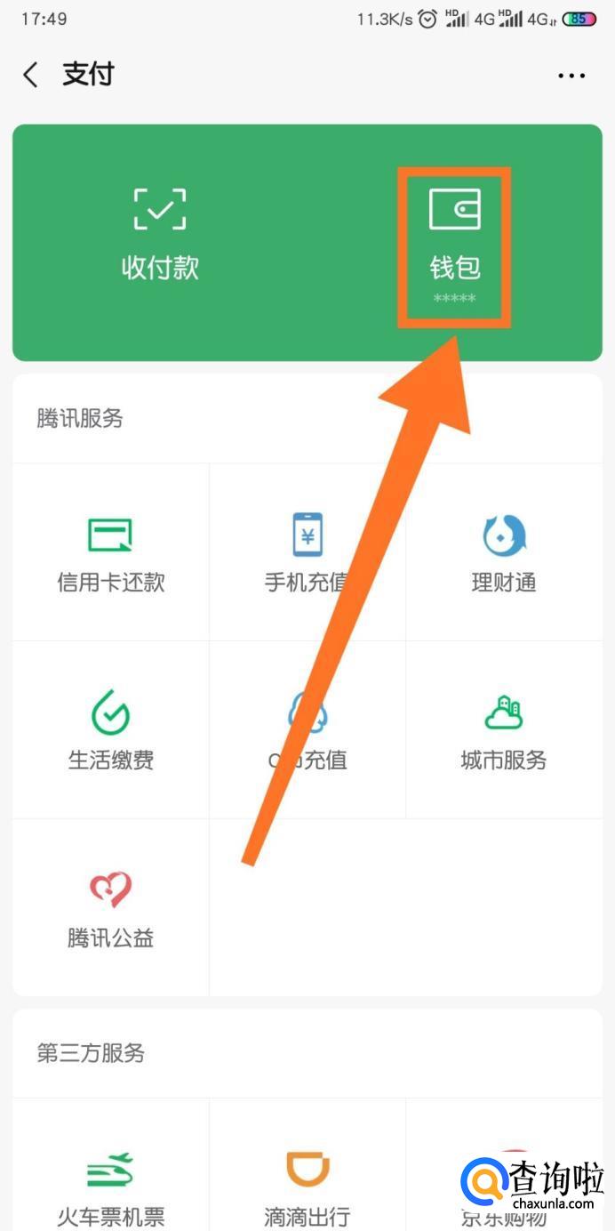 点击支付之后,我们点击【钱包】。