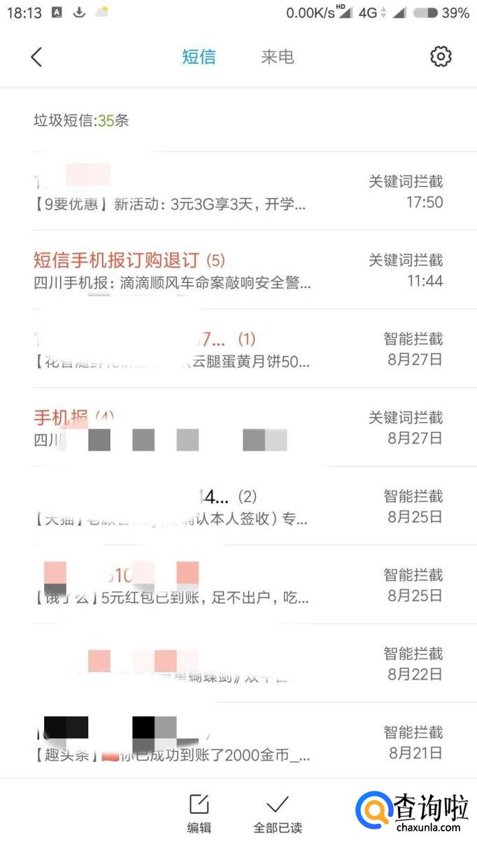 手机设置了黑白名单。到短信里面的