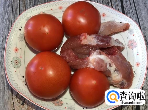 准备好食材:西红柿四颗、瘦肉适量。瘦肉可以用半肥瘦的肉,这样也好吃。
