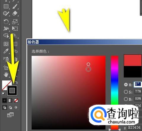 鼠标移到工具栏底下的描边色块这里,双击,调出拾色器。在拾色器中选择自己想要的颜色,比如,红色;再点确定。