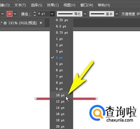 弹出一列数值,数值越大表示线条就越粗,比如,选择10pt