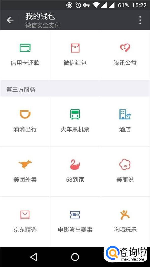 进入“钱包”后,向下翻,会出现美团外卖的角标。点击进入。