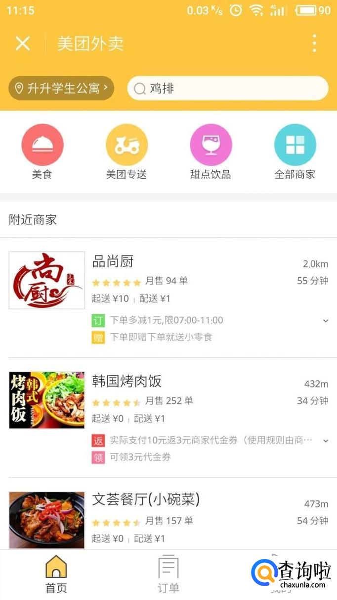 进入美团登陆后,找到想吃的食物,下单就可以啦!