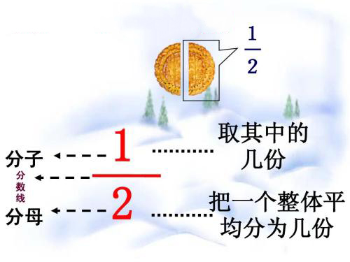 分数的意义:一个物体,一个图形,一个计量单位都可以看为一个单位“1”,将单位“1”平均分为几份后,表示这一份或者几份的数就可以称为“分数”,分数中,单位“1”被分成多少份的就是分母,有这样多少份就是分子;其中的一份叫做分数单位。