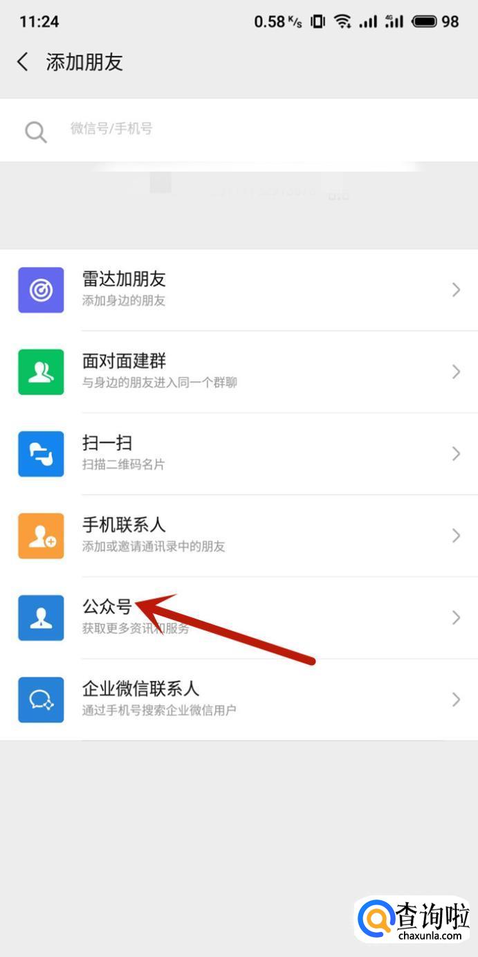 进入之后,点击“公众号”,如图所示。