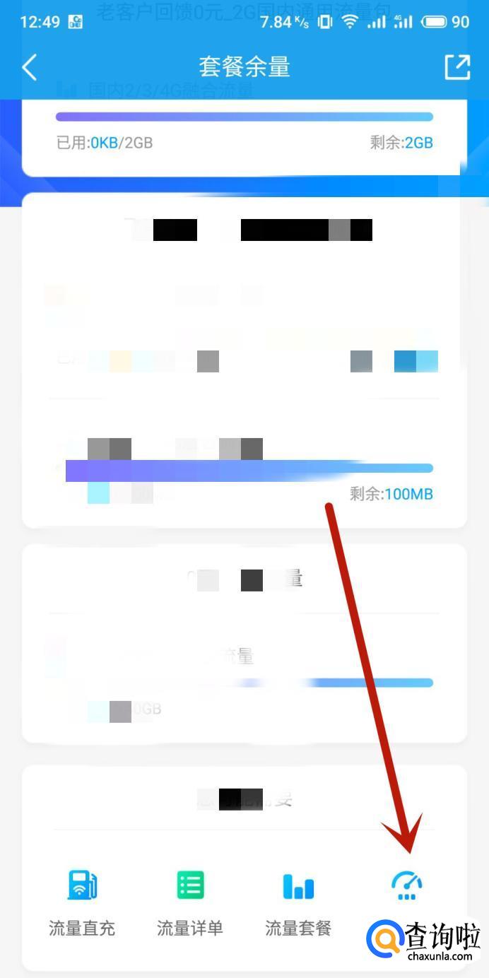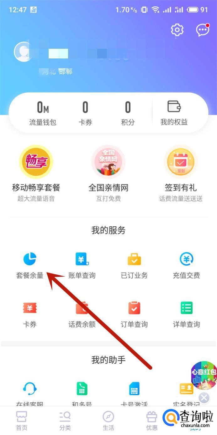 进入之后,点击“套餐余量”,如图所示。