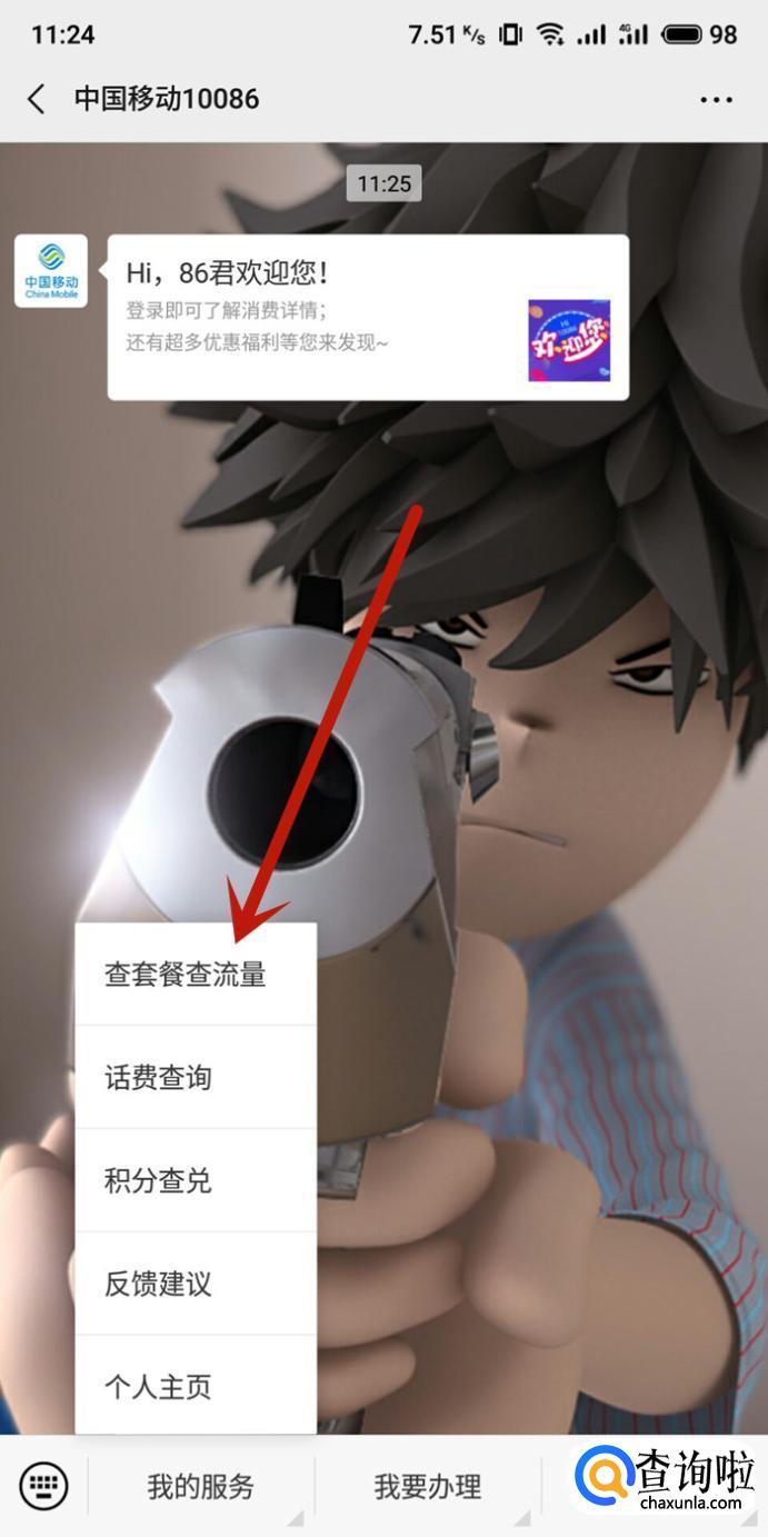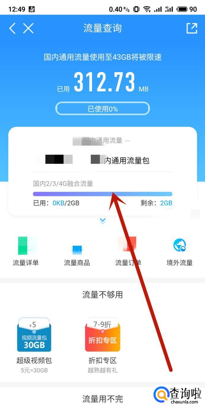 进入之后,点击“查套餐查流量”即可查询流量,如图所示。