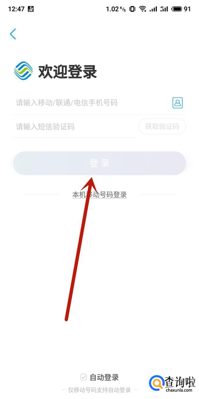 打开中国移动APP,登录自己的账户,如图所示。