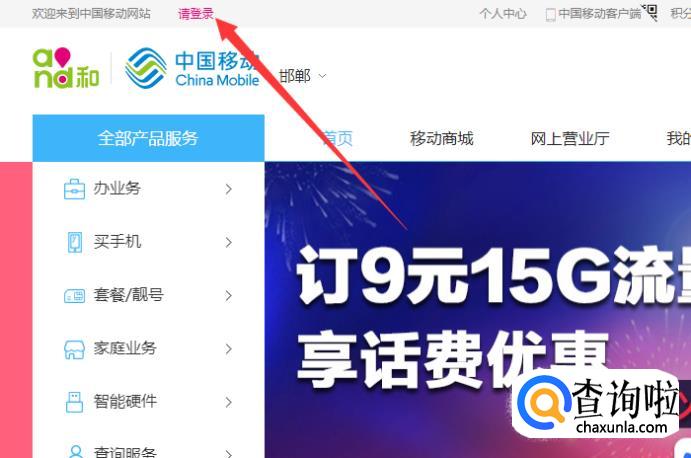 进入中国移动官网,点击“请登录”,如图所示。