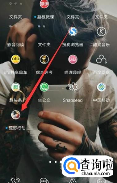 打开手机,找到荒野行动,点击并进入,如图所示。