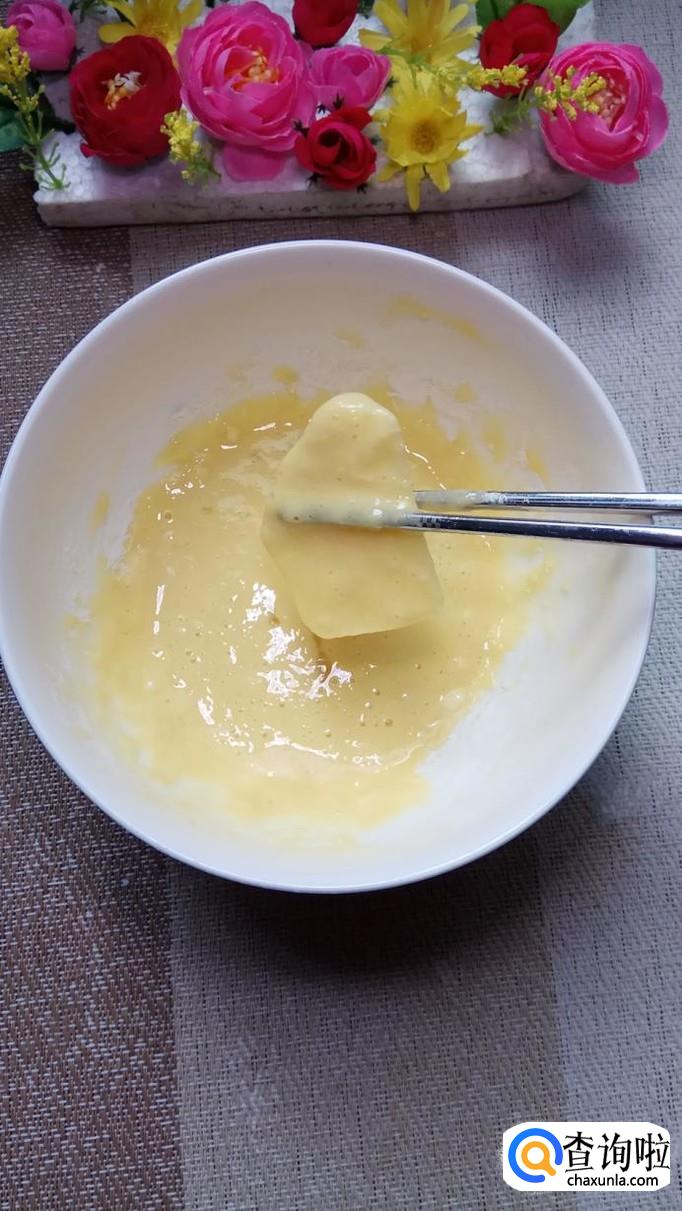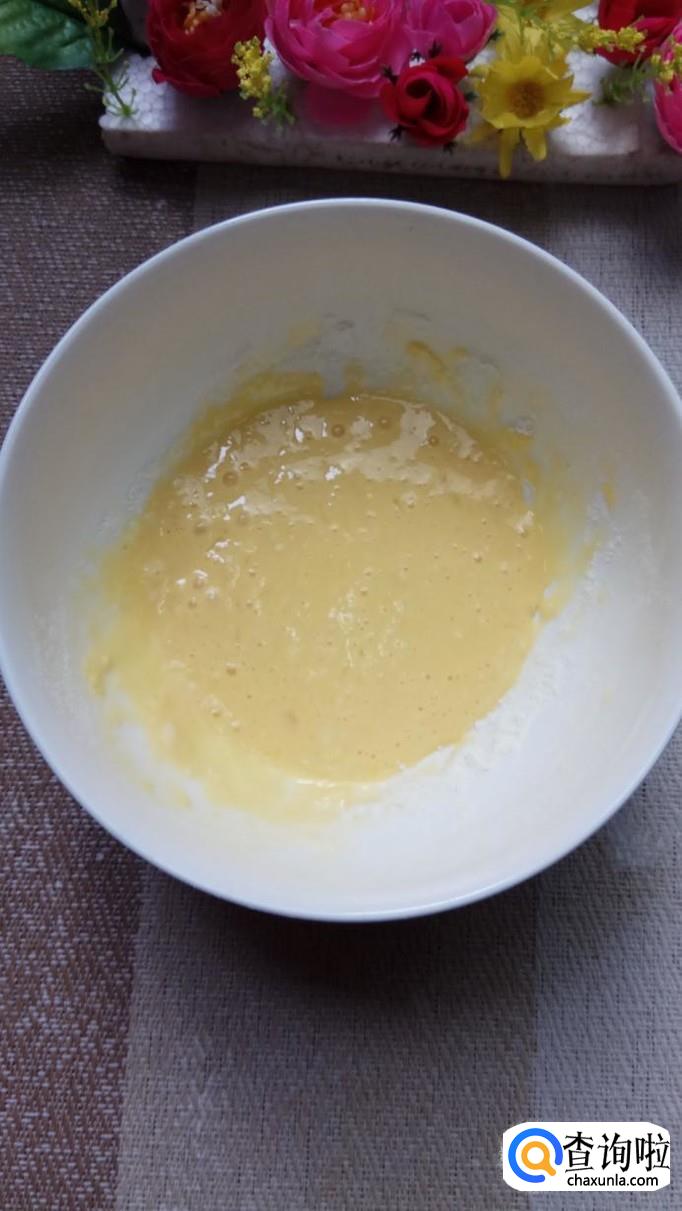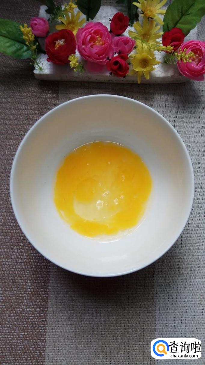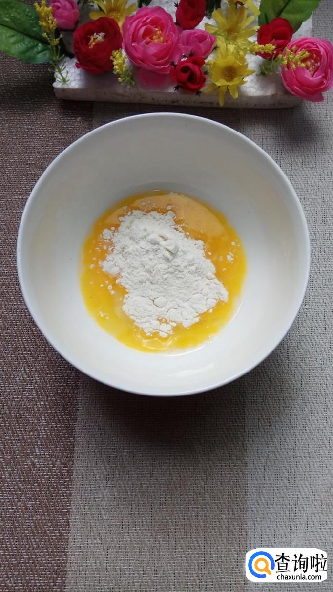 碗中打入一个鸡蛋,加入适量淀粉,调成面糊,面糊调成酸奶状,差不多就可以了。