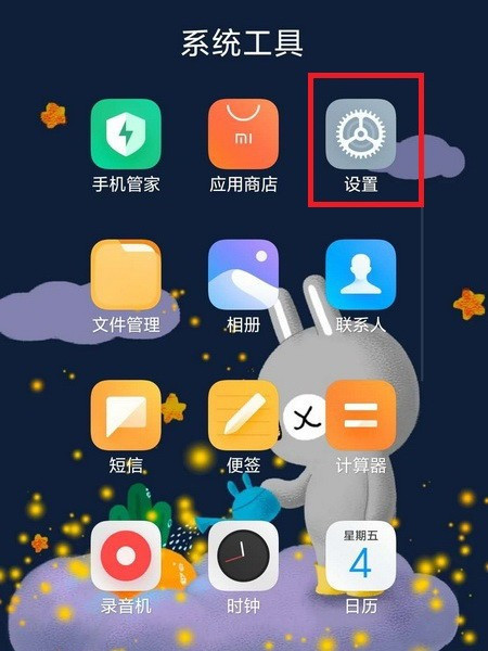 1、打开手机桌面,找到“设置”图标点击进入。