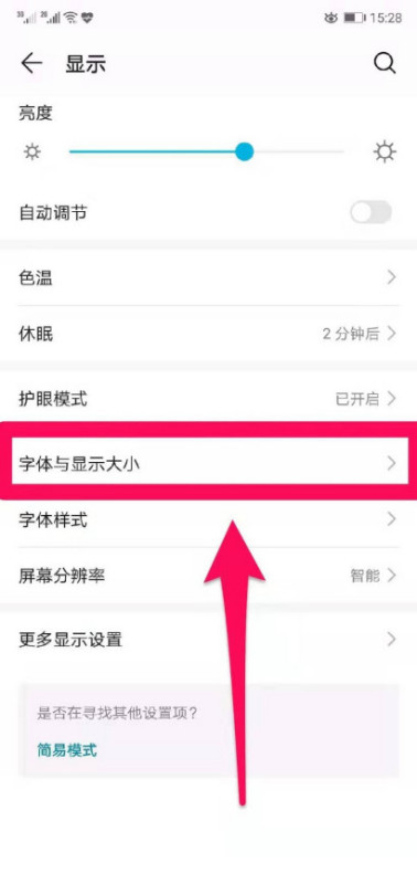 手机的字体大小在设置——显示——字体与显示大小,调整到合适的字体即可。