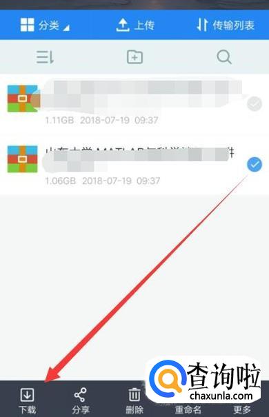 打开百度网盘软件,找到刚刚保存的文件,点击一下文件,然后选择图示位置下载即可。