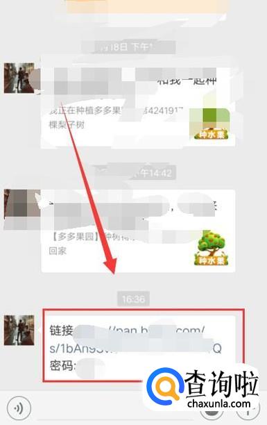 打开微信,找到微信群,在群里面找到百度云分享链接,点击链接,进入链接里面,如图所示。